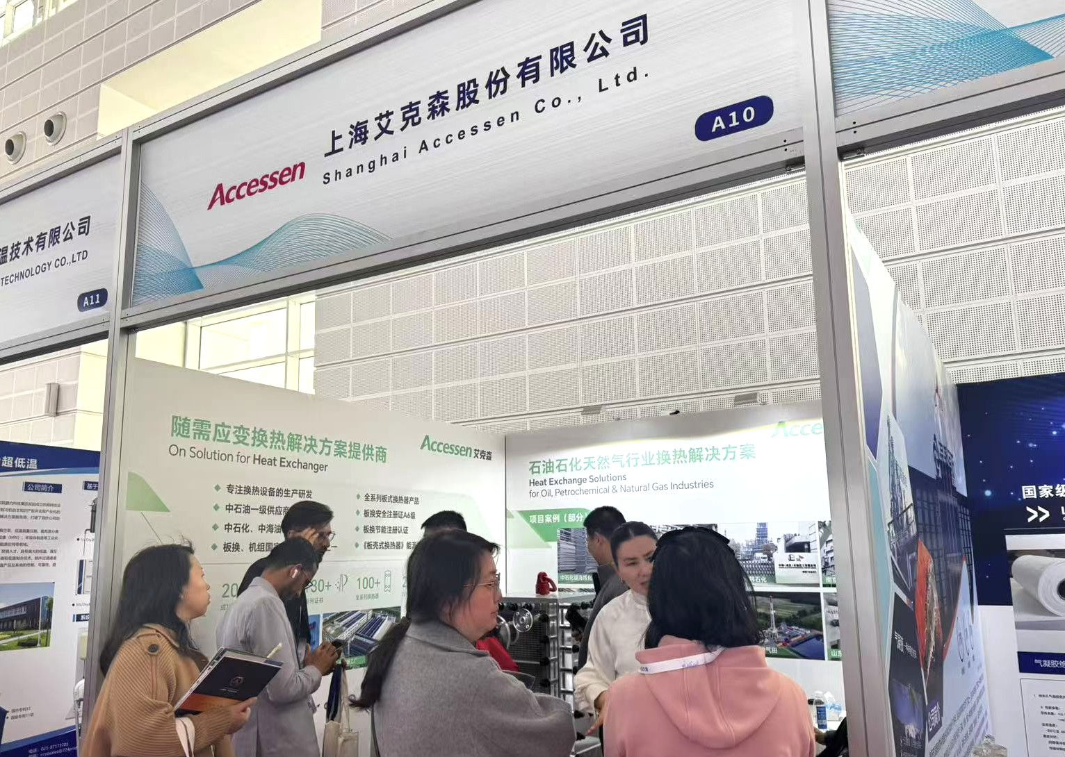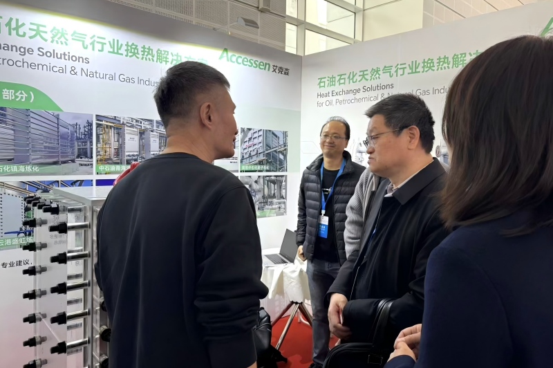 在石油化工和液化天然气行业应用中,艾克森的各类换热设备已成功应用于中石油各地油气田、镇海炼化、扬子石化、盛虹炼化、中科炼化、中泰深冷、印尼国家石油、新地能源、新奥能源、三一能源、四川绿杉、四川杰瑞、福斯达深冷等各类项目,实现各类装置间能源高效转换与节能减排,吸引了众多参会嘉宾、行业客户及合作伙伴驻足交流和技术咨询。