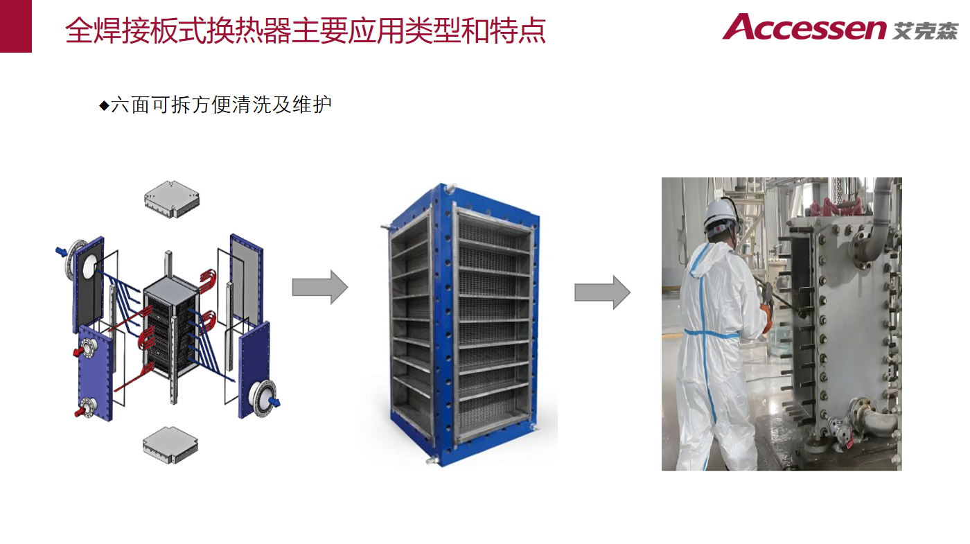 A-BLOC全焊六面可拆换热器为特殊行业六面可拆维护设计,突破了传统焊接板式换热器不可拆卸的局限,维护时间缩短70%,兼具了全焊接结构的可靠性与可拆易维护的便捷性,传热系数高,体积小,重量轻,完美适配石化装置改造尺寸和重量限制的现场升级需求。(河南信德硫化物高效回收利用、盛虹石化液化分离)