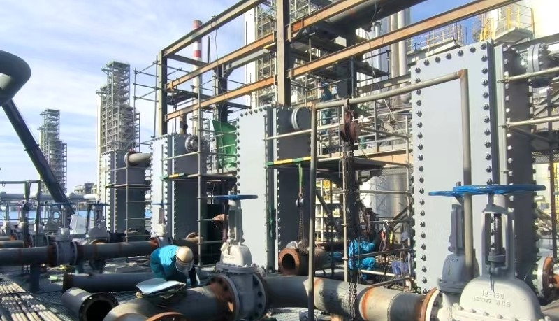 上海艾克森结合在石油化工、煤化工、新能源等领域的成熟应用经验,重点推介了适配石油化工领域的全系列高效换热产品和解决方案。可拆式板式换热器具备高效换热、结构紧凑、占地面积小的核心优势,通过波纹板片优化设计、密封系统升级与流体流道合理排布,可满足化工介质换热、余热回收等常规工况需求。针对石油化工项目的介质特性,该产品可在材质选型、清洗维护、温度压力适配等方面灵活调整,有效降低项目初期投资与运维成本。(镇海炼化PE装置)